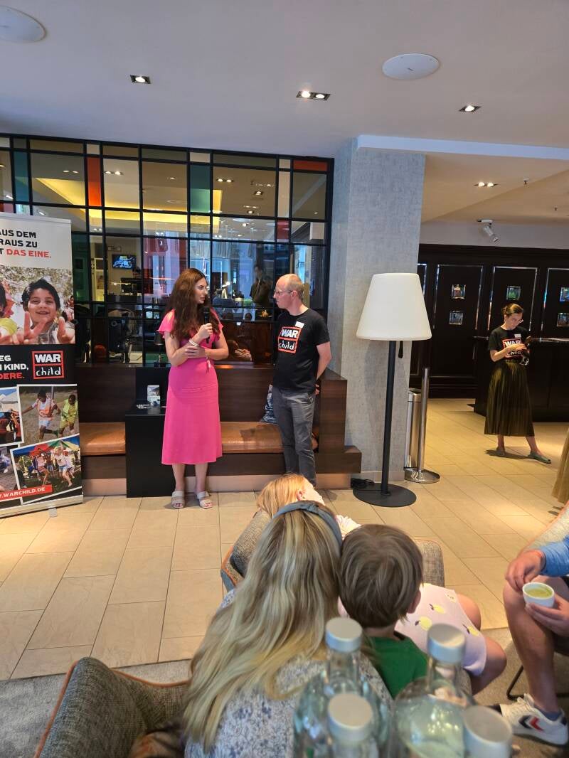 Tanya Yahodka von Mitheya als Gastrednerin bei War Child zum Thema Traumatisierte Kinder und Ihre eigenen Erfahrungen als Studierte Pädagogin im Umgang mit den Kindern. Tanya zusammen mit der Band Beatle-Tribute "The Analouge Light", sie sind mit ihren Fahrrädern unterwegs nach Lviv in die Ukraine und sammeln spenden.